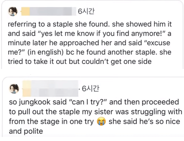 And Jung-guk keps helping her when she found other staplers on the stage. It was happy to hear the story of Jung-guk being kind to other people as always.