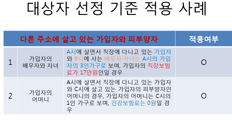 다른주소에 살고 있는 가입자와 피부양자 인 경우