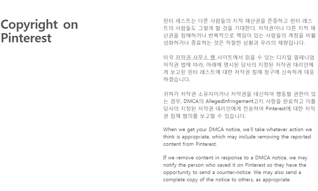 파일을 올릴때 사진에 URL이 첨부되서 사진을 누르면 URL이 삽입된 사이트 로 넘어갑니다. 한마디로 URL을 홍보하기위해서 핀을 만드는데 이 핀이 저작권 침해 대상이 될수 있는것입니다.