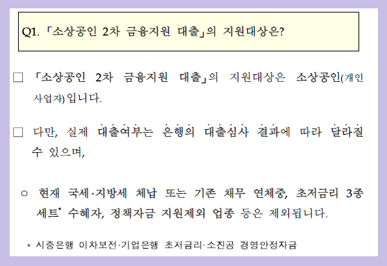 소상공인 2차 금융지원 대출 의 지원대상은?? 어떻게 되나요?